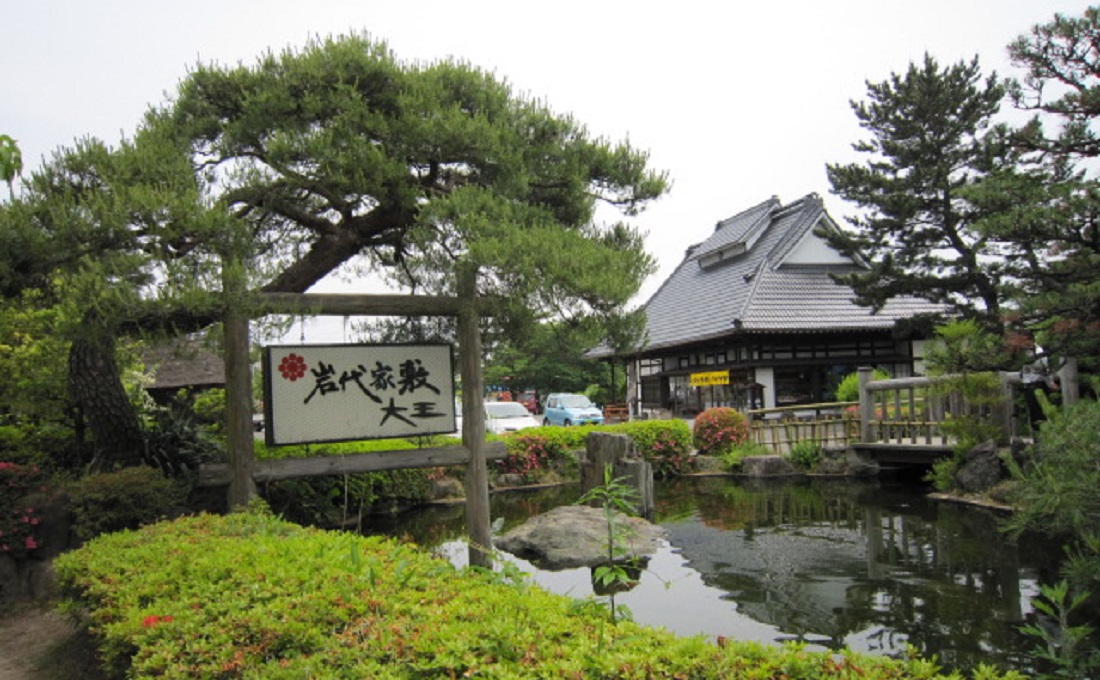 岩代屋敷大王福島市の高湯街道沿いにあり水と緑に囲まれたレストランです。古民家風の店内には田舎風景の出会えるお店で、蕎麦料理がお勧めメニューです。レストラン隣りにはお菓子売り場もでき、蕎麦を始め、アイスクリームやお菓子も自家製です。