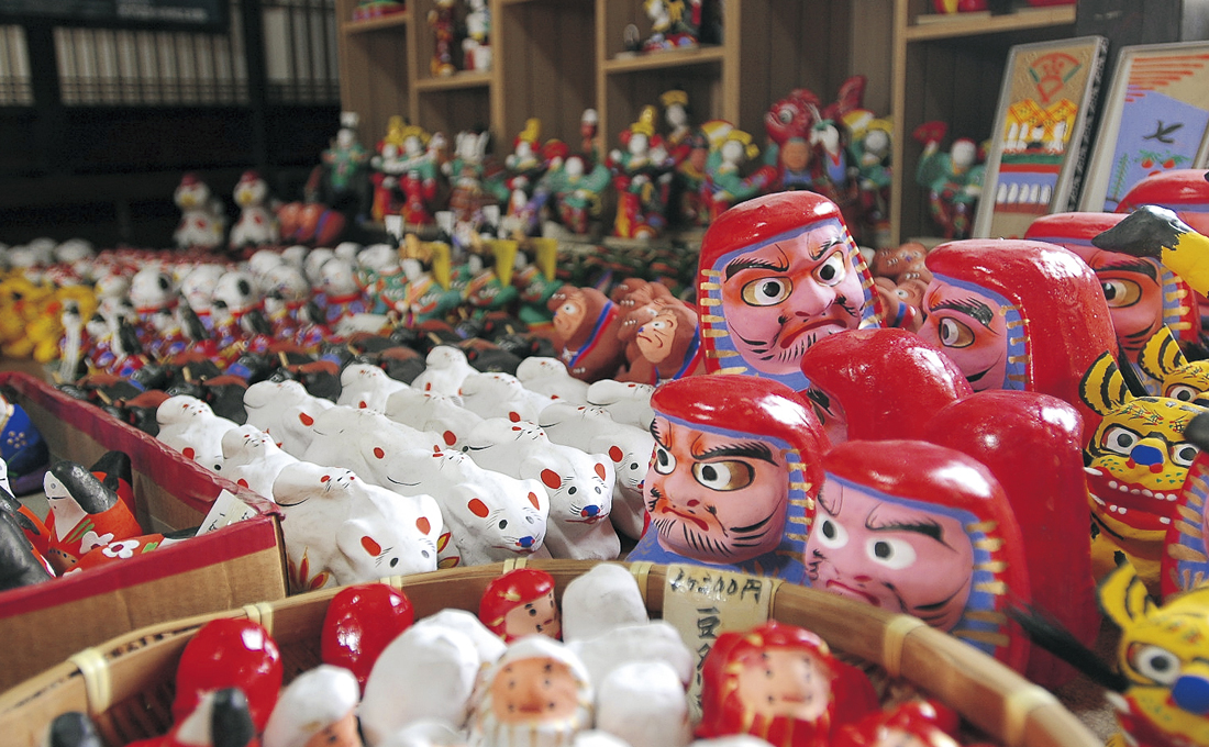 4軒の家々が数百年の伝統を守り、張子(はりこ)人形や張子面、三春駒など民芸品の製造し、お土産品を販売続け今日に伝えております。