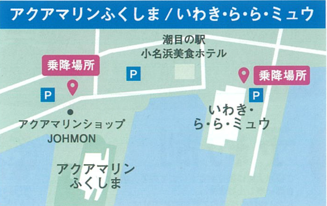 アクアマリンパーク号の復路便は、いわき・ら・ら・ミュウ13:45発となります。